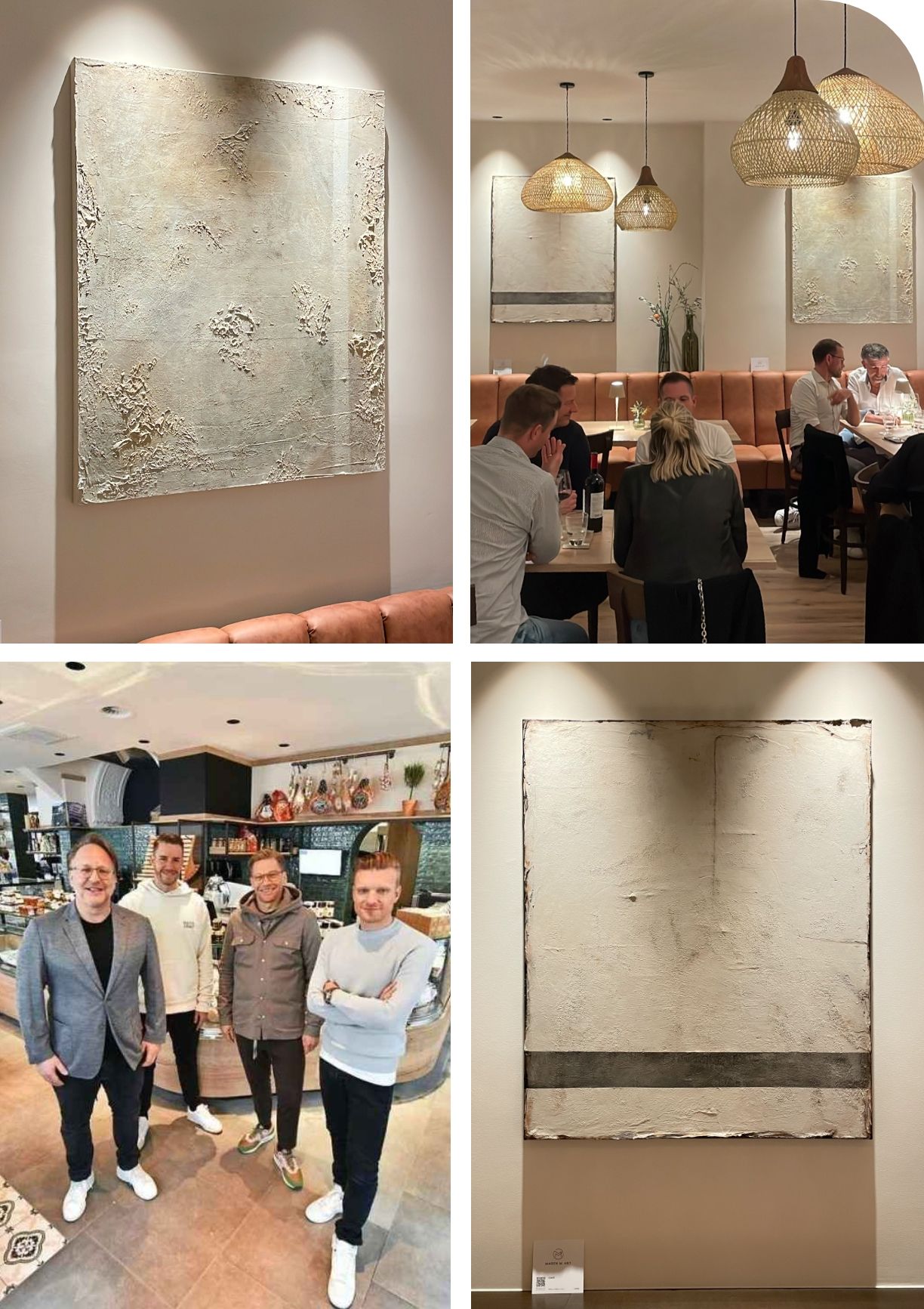 Vom 9. bis 13. Juli 2025 wurde das ehemalige Vapiano am Freiburger Fahnenbergplatz zum temporären Ausstellungsraum für die erste Maren M. Art Pop-up Gallery, kuratiert von SMOW Freiburg. Gezeigt wurden 18 Kunstwerke aus verschiedenen Serien von Maren Maggiore, darunter auch Arbeiten der Reihe "Heaven on Earth", die mit echtem Kaffee entstanden sind. Das Opening am 9. Juli bildete den emotionalen Auftakt: ein offener, lebendiger Abend mit vielen Begegnungen, persönlichen Gesprächen und echtem Austausch rund um die Kunst. Die besondere Atmosphäre blieb über die gesamte Woche spürbar – getragen von Neugier, Resonanz und einer spürbaren Verbindung zwischen Menschen und Bildern. Begleitet wurde die Ausstellung von einem sorgfältig kuratierten Rahmenprogramm: Ein stimmungsvolles Opening, ein Pilates-Event auf der Terrasse mitten in der Innenstadt, ein Matcha-Workshop sowie die „Lady’s Art Affair“. Ein herzlicher Dank gilt den Partnern und Unterstützern der Galerie: smow Freiburg, Porsche Freiburg, Demand Immobilien, Doc.Kawa, Vantol Immobilien, Schoonheid Cosmetics, Pilates by Carla, Aimé Berlin, Omniprint, Matcheria Freiburg sowie Svenja Frank für die fotografische Begleitung. Die Pop-up Gallery war für Maren Maggiore ein besonderes Projekt – und ein weiterer Schritt auf ihrem Weg, Kunst zugänglich, nahbar und erlebbar zu machen.